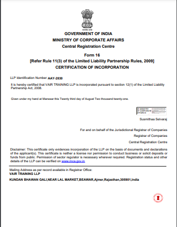 Designed & Developed by VAIR TRAINING LLP
